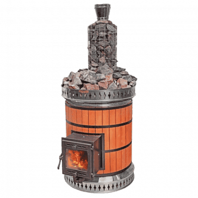 Печь круглой формы с облицовкой из красного кирпича. Закрытая каменка вмещает до 100 кг камней, которые раскаливаются до температуры 700 °С в пиковом режиме работы печи. Через теплообменник рекомендуется подключать бак от 130 до 150 литров. Имеется конвективная решетка для воздушного отопления парной.